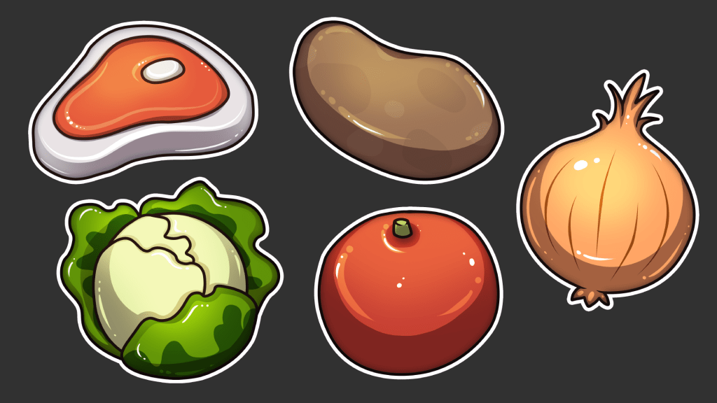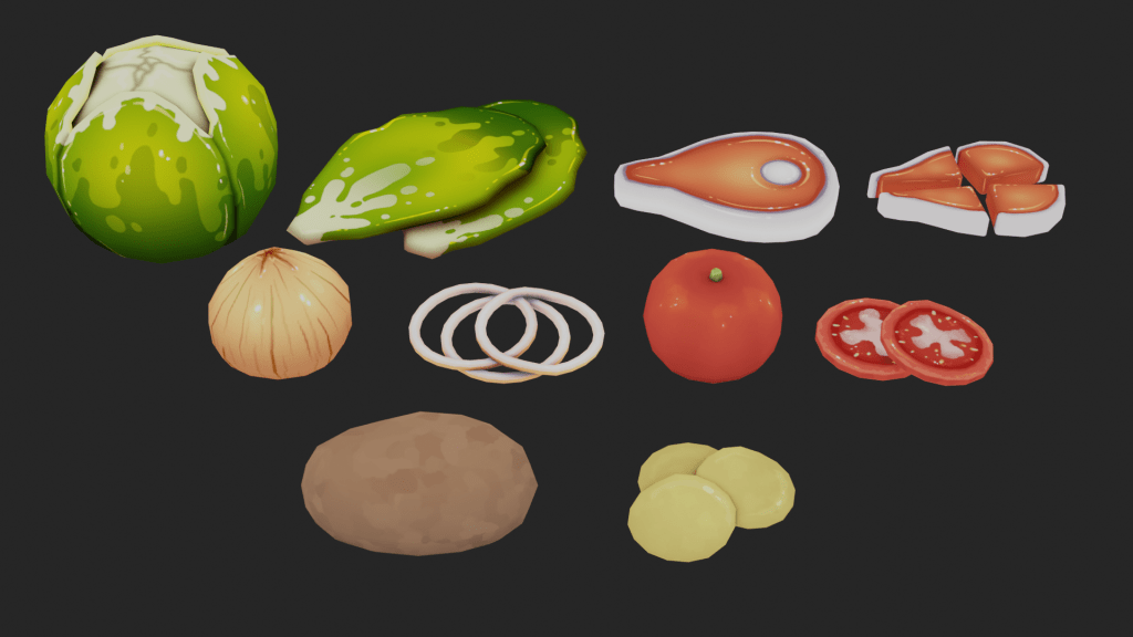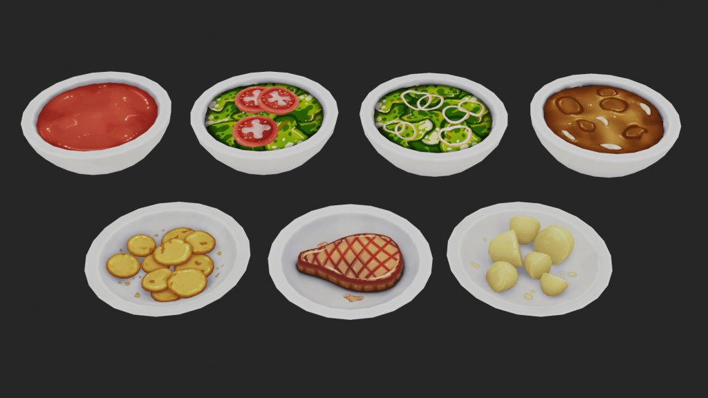 In this project, my focus was on a cozy atmosphere. I wanted to create cute creatures that the player would love to cook for and create a restaurant that everybody would love to visit. Here I have decided on a painterly style and warm colors.
